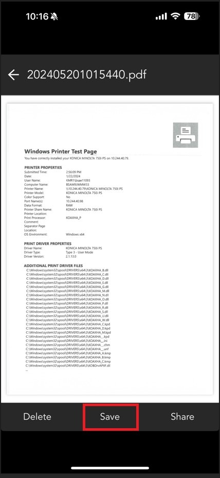 How to save a document from mobile print to phone storage