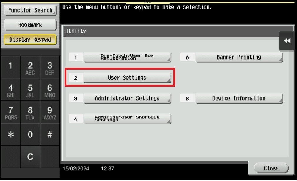 STEP 2 – Select [User Settings].