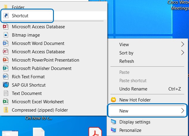 STEP 2: Create a new shortcut on the Desktop by right click and select New > Shortcut.