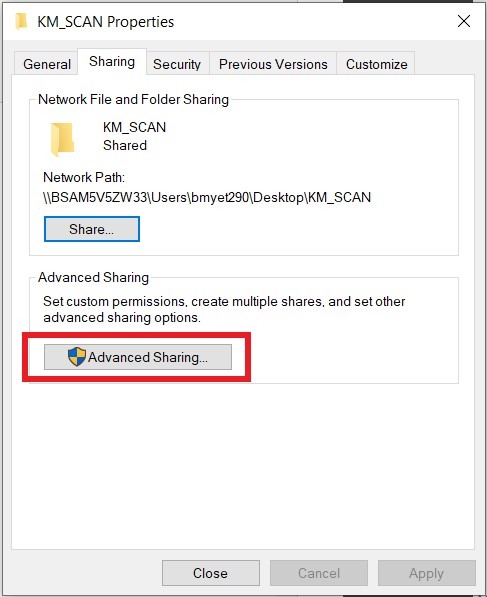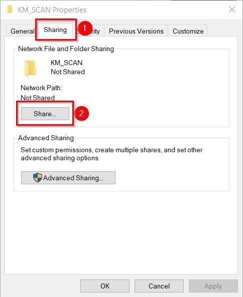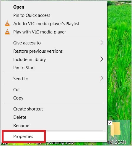 1. Right click on the [KM_SCAN] folder and select [Properties].
