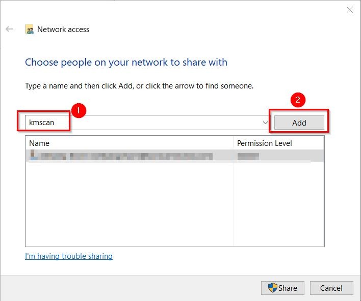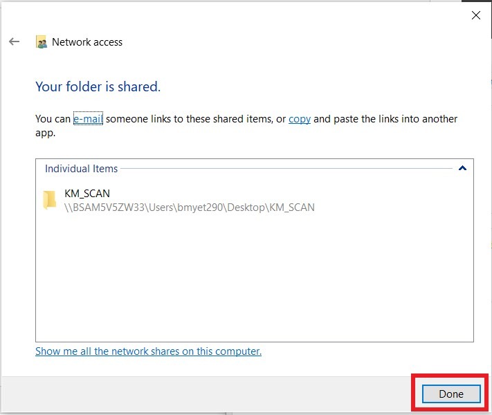 • File Path: KM_SCAN (As what we create the scan folder at the very first step)