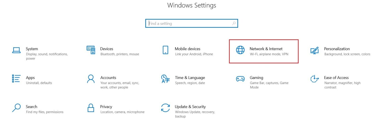 1. Next we need to allow for Public Folder Sharing, click on windows [Start] button and select [Settings].