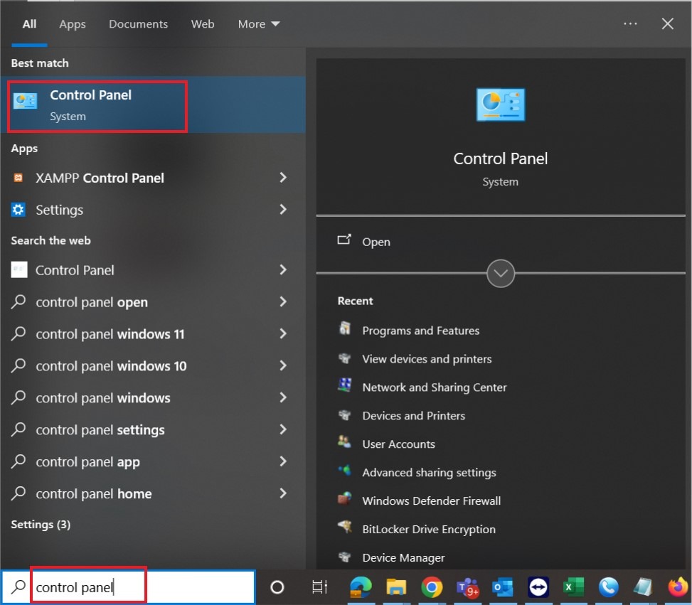 1. Open [Control Panel] by typing the control panel on the window search bar.