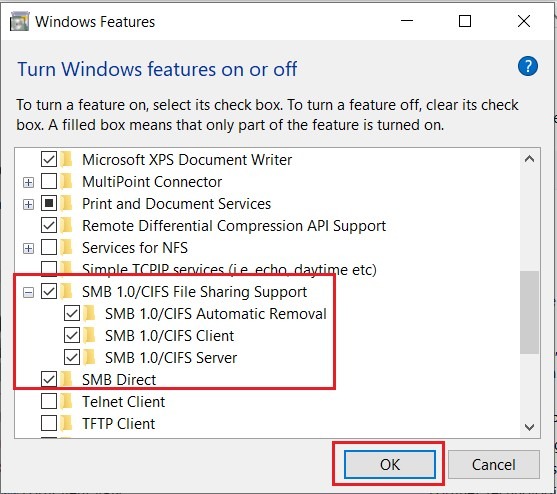 STEP 3 – Allow the SMB Version 1.0 if you’re using Window 10 or 11