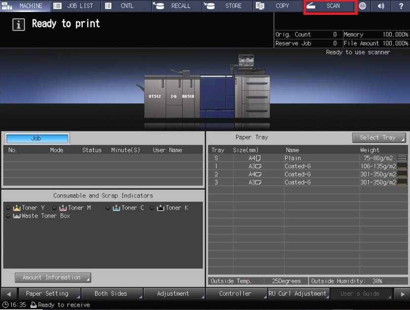 Guide on how to setup scan to SMB from the Konica Minolta printing production machine to a Windows PC.