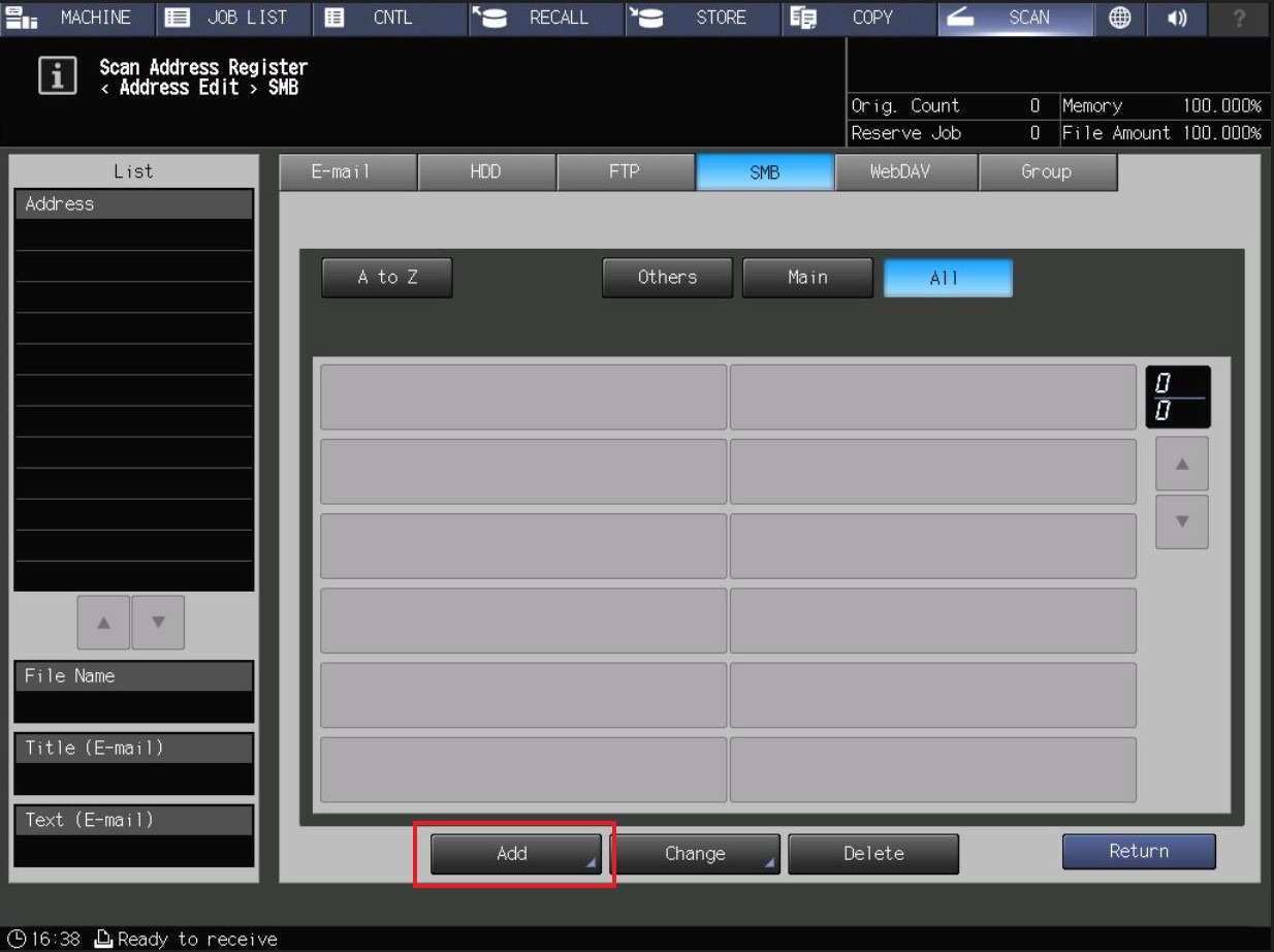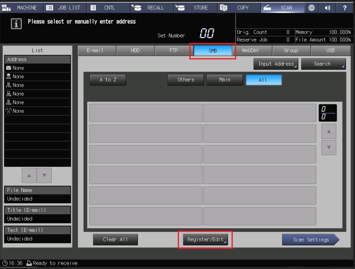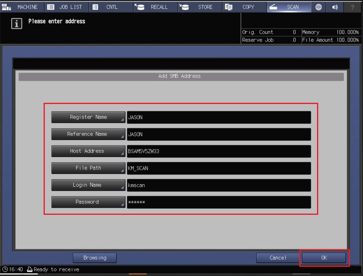 STEP 4 – Register the SMB settings on the Konica Minolta Printing Production machine.
