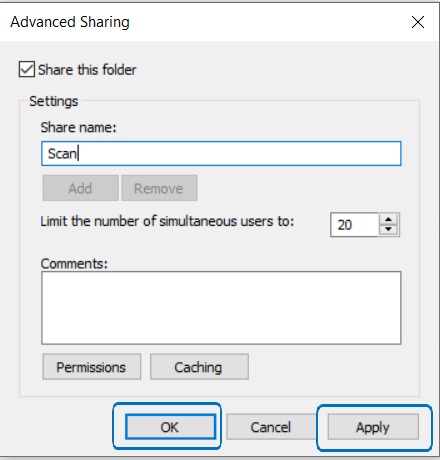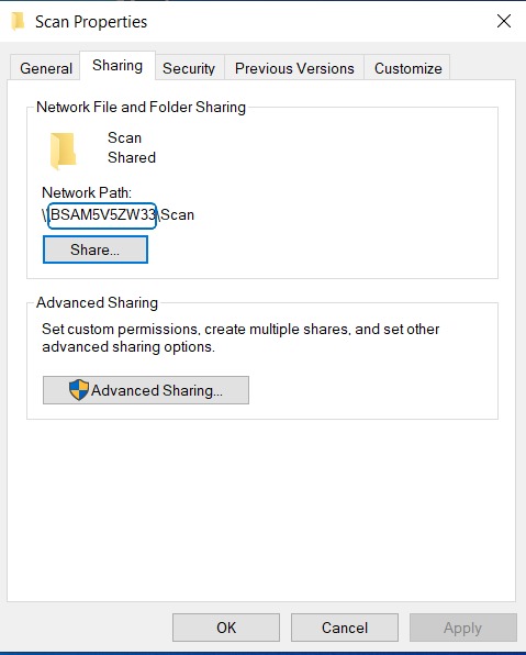 • Host Address: Computer Name (Can refer below screenshot from Folder Sharing Path before \scan where sharing file path will be shown)