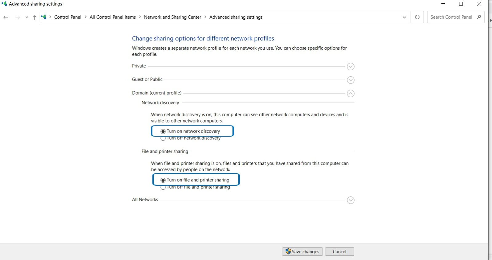 1. On the Domain Column or the Guest or Public who on the beside of the network profile got showing current profile, make sure to change the setting below and click Apply to save the setting.