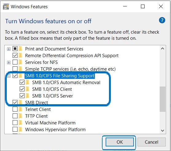 STEP 3 – Allow the SMB Version 1.0 if you’re using Window 10 or 11