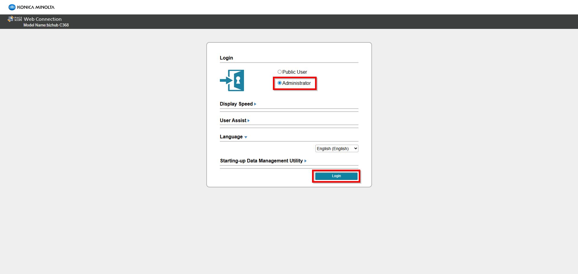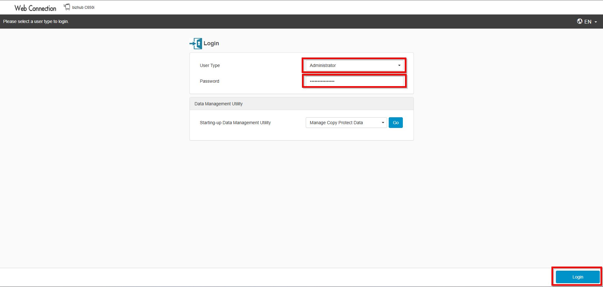 STEP 1 – Access the machine Web Connection from the PC browser. Click this LINK on how to access Web Connection from the browser.