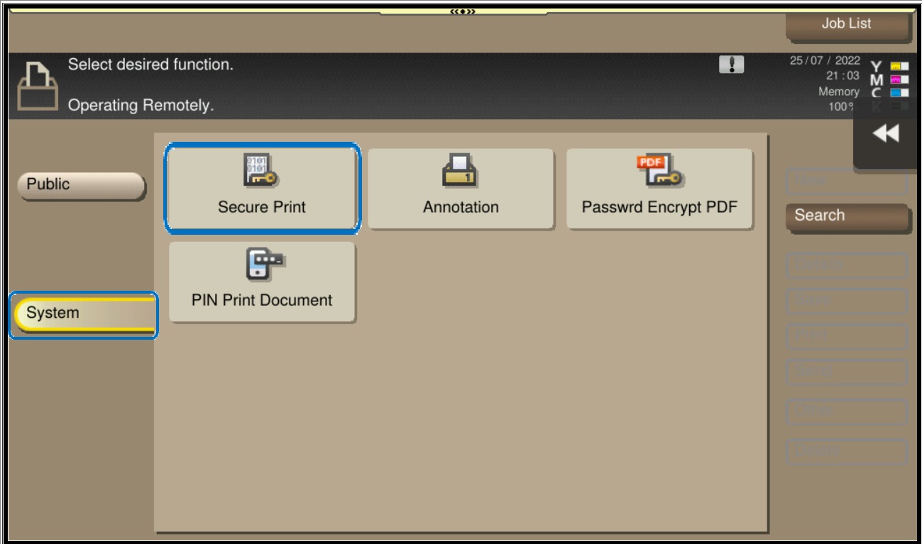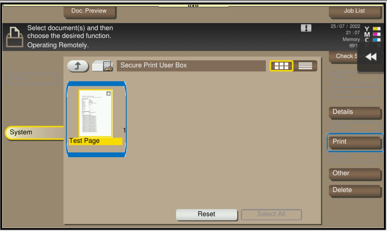 STEP 2 – Retrieve the document on the machine Secure Print folder.
