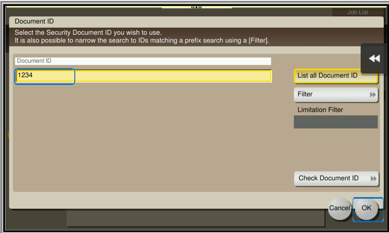 3. Select the Document ID to print and click OK.