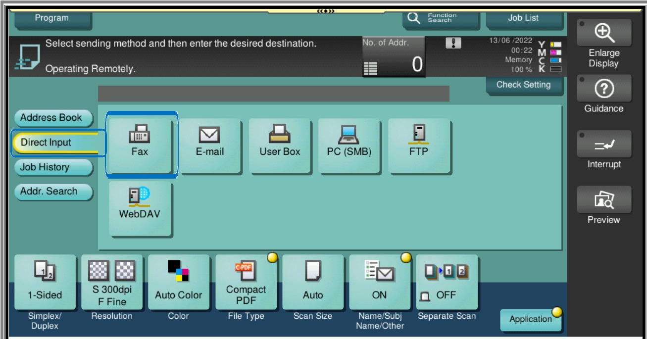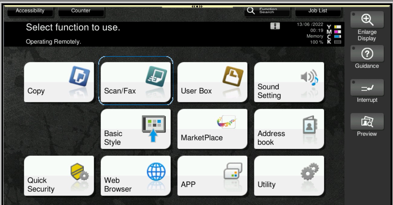 STEP 1 – Press on [Menu] button, Select [Scan/Fax].