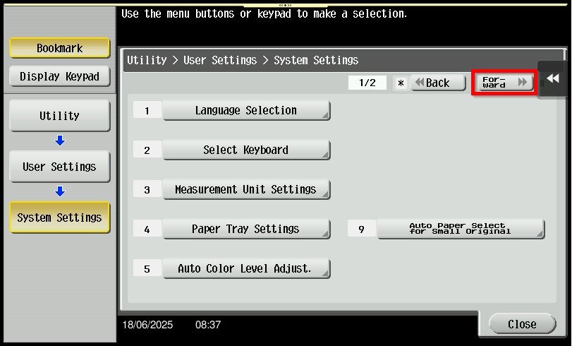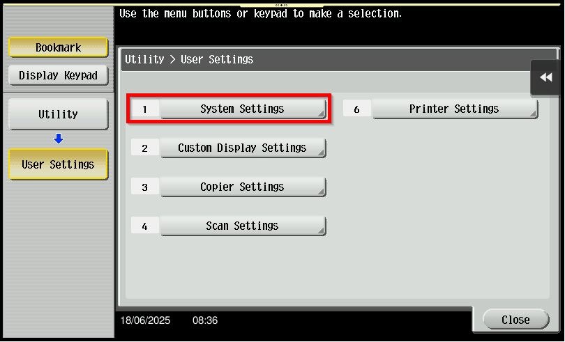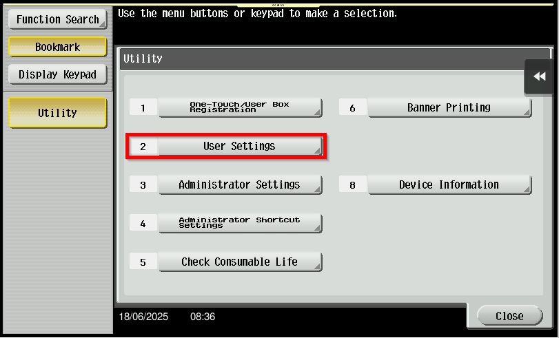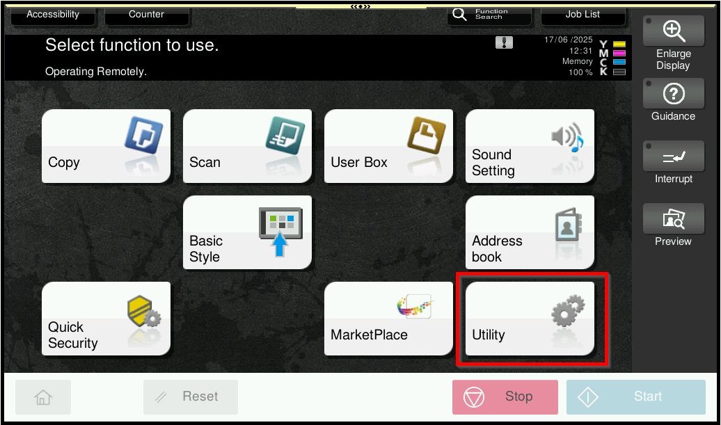 STEP 1 – On the Konica Minolta machine, Select [Utility].