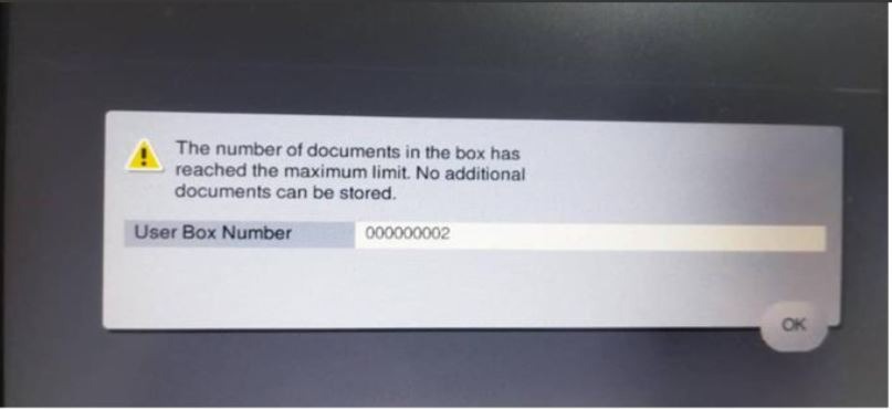 Guide on how to resolve the issue unable to scan to user box, the number of documents in the box has reached the maximum limit.