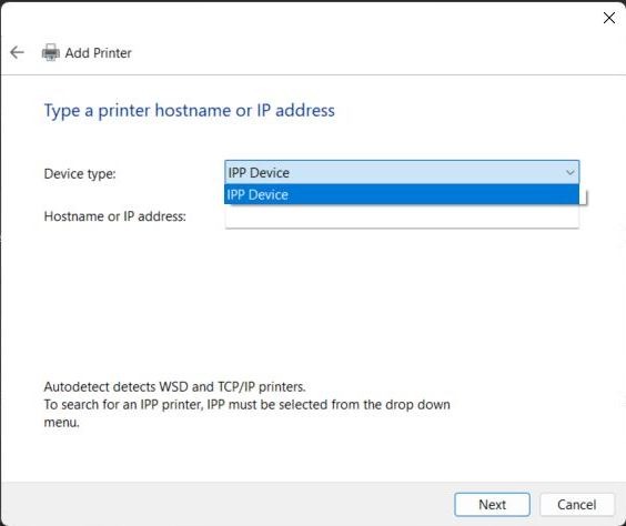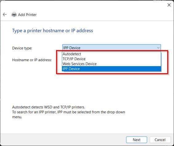 Issue: Unable to install printer driver, add printer via TCP/IP device option not found or failed to install under Universal Printer Driver (only on Window 11)