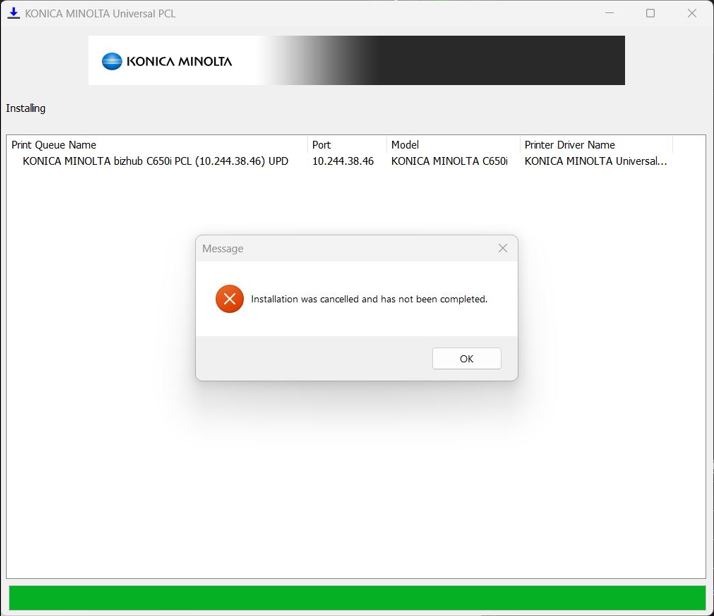 *Under Add Printer via Universal Printer Driver, the installation will cancelled and not continue to installed.