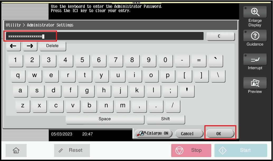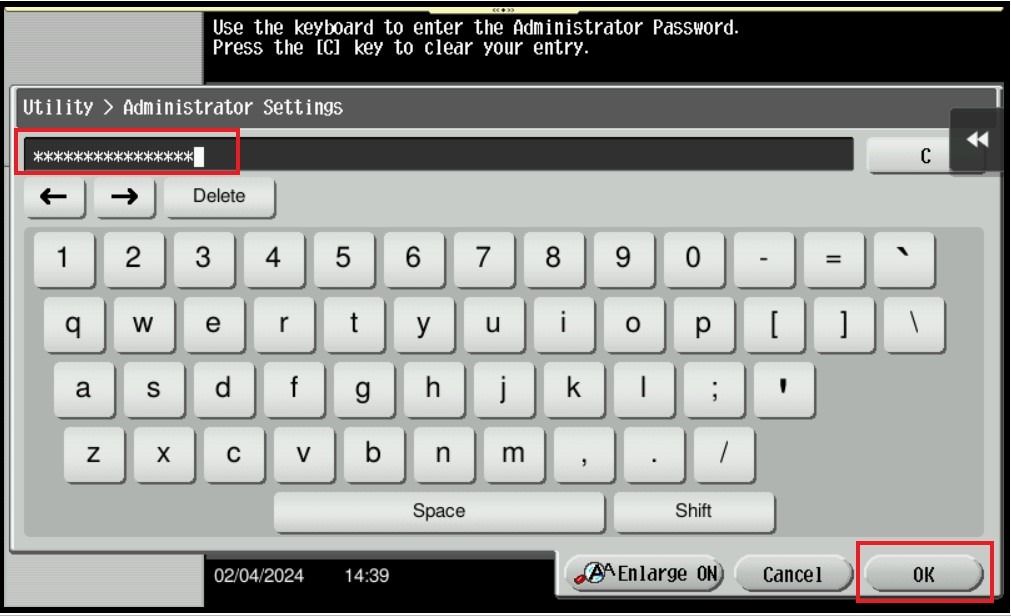 STEP 3 – Key in admin password and click ok to login.