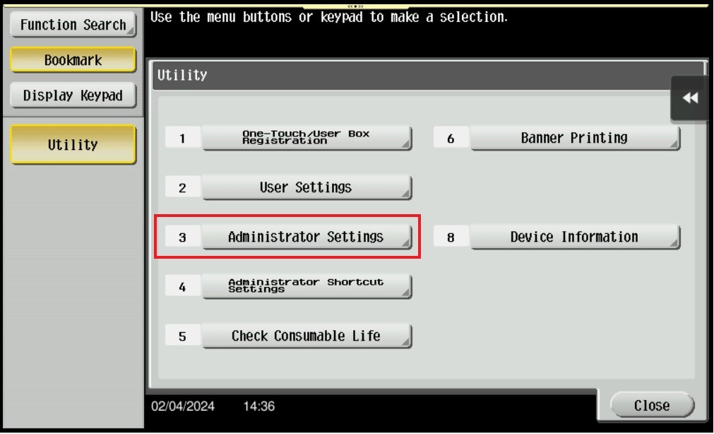 STEP 2 – Select [Administrator Settings].