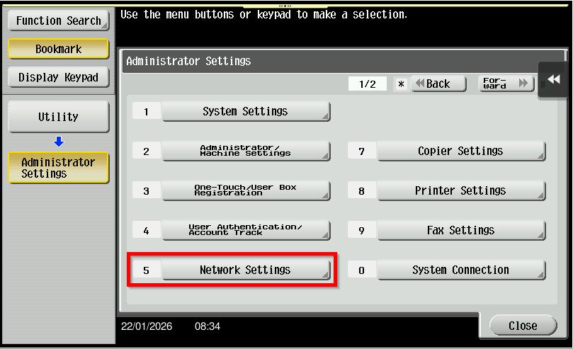 STEP 1 – Access the machine Web Connection from the PC browser. Click this LINK on how to access Web Connection from the browser.