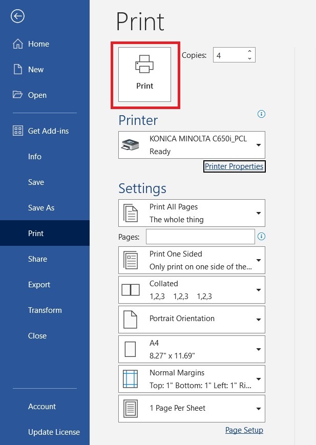 Step 3 – Select [Print] to print the document, each of the set will be arrange accordingly by portrait and landscape orientation, thus eliminate offsetting after printing.