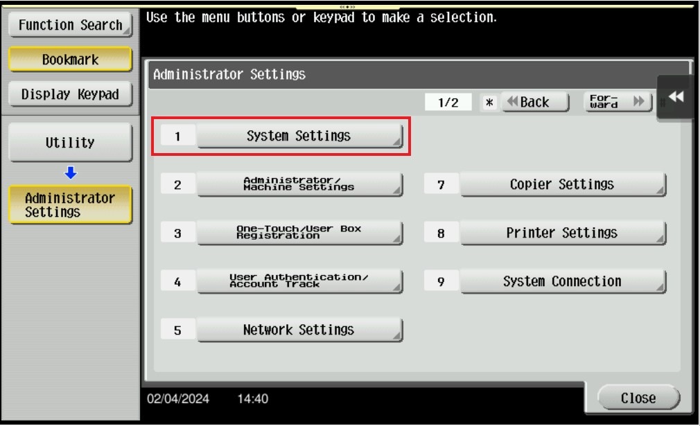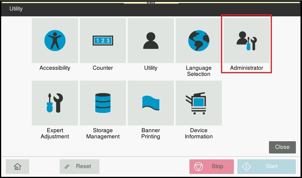 STEP 3 – Enter the administrator password for the machine and click OK to login.